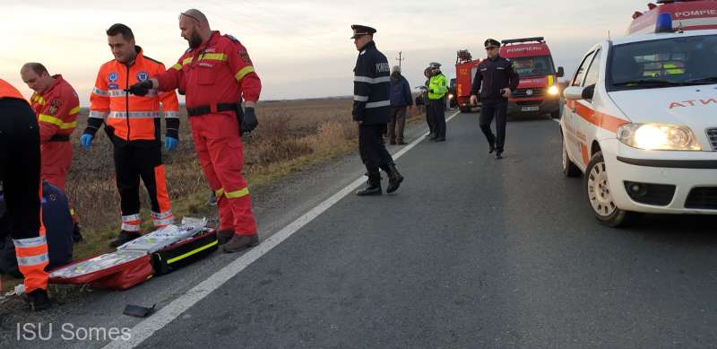 Potrivit acesteia, accidentul rutier s-a produs între un microbuz şi un autoturism, între Mădăras şi Ardud.