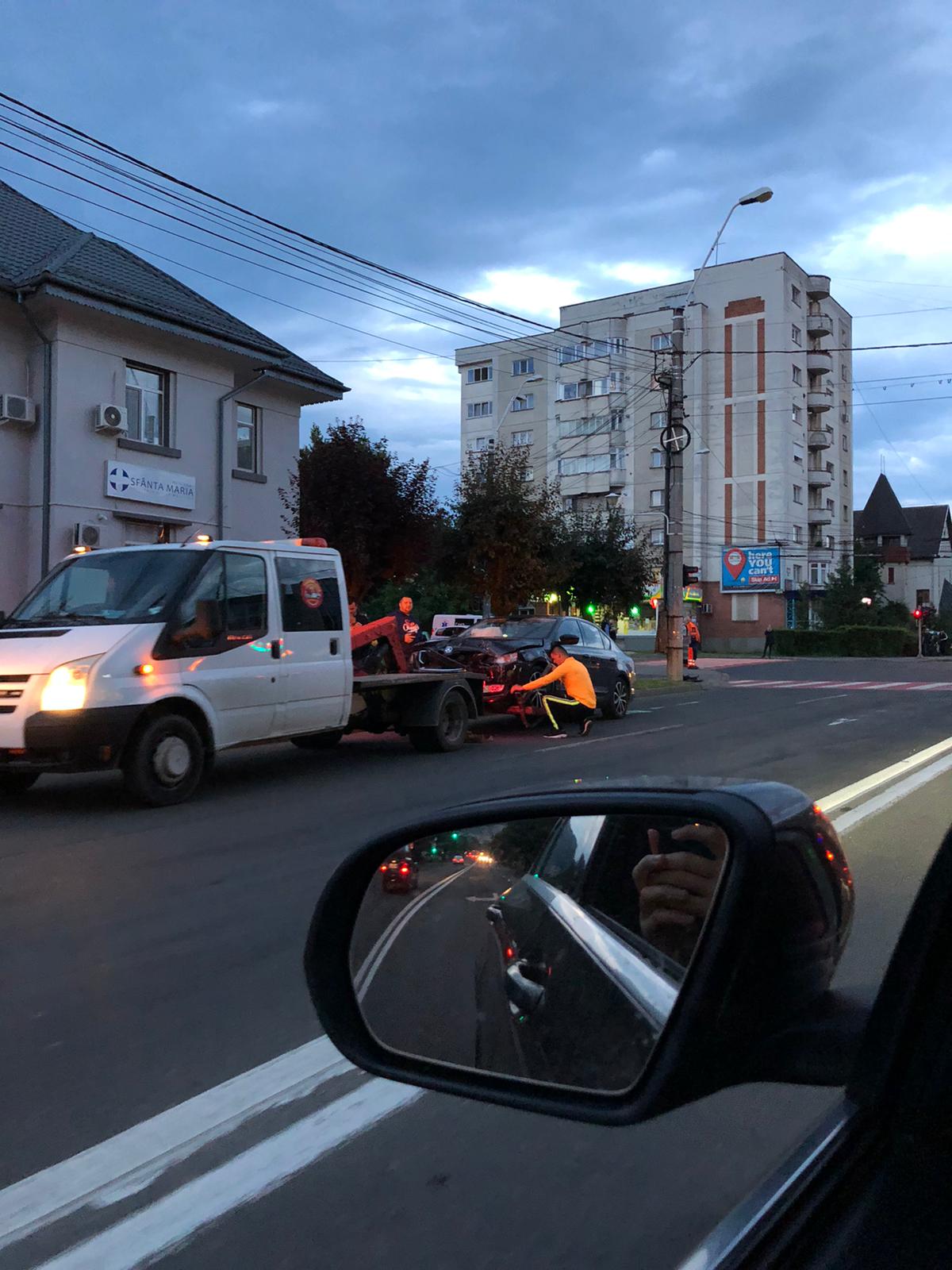 Accident de circulație pe Bulevardul București din Baia Mare în fața Policlinicii Sfânta Maria. În impact au fost implicate o ambulanță și un autoturism care, cel mai probabil a ignorat semnalele luminoase și acustice ale mașinii care transporta pacienți.