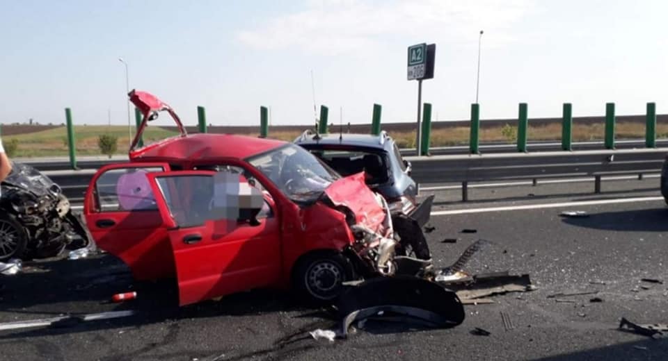 Imagini teribile au fost surprinse pe A2, unde un BMW a intrat în plin într-un Matiz, strivindu-l de un VW. Patru victime, dintre care una încarcerată,pentru care a fost solicitat elicopterul SMURD. O fetiță de 11 ani, printre victime.
