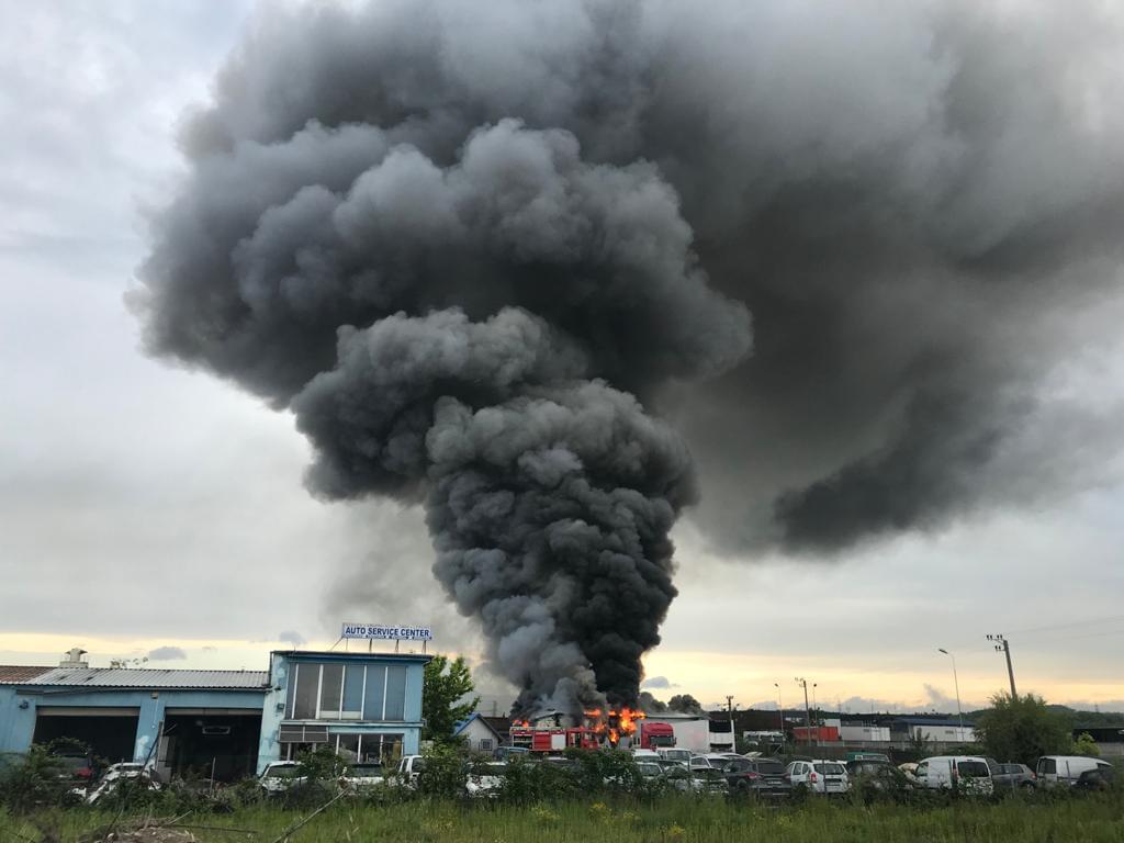 Actualizare / Hală în flăcări în Baia Mare – GALERIE FOTO