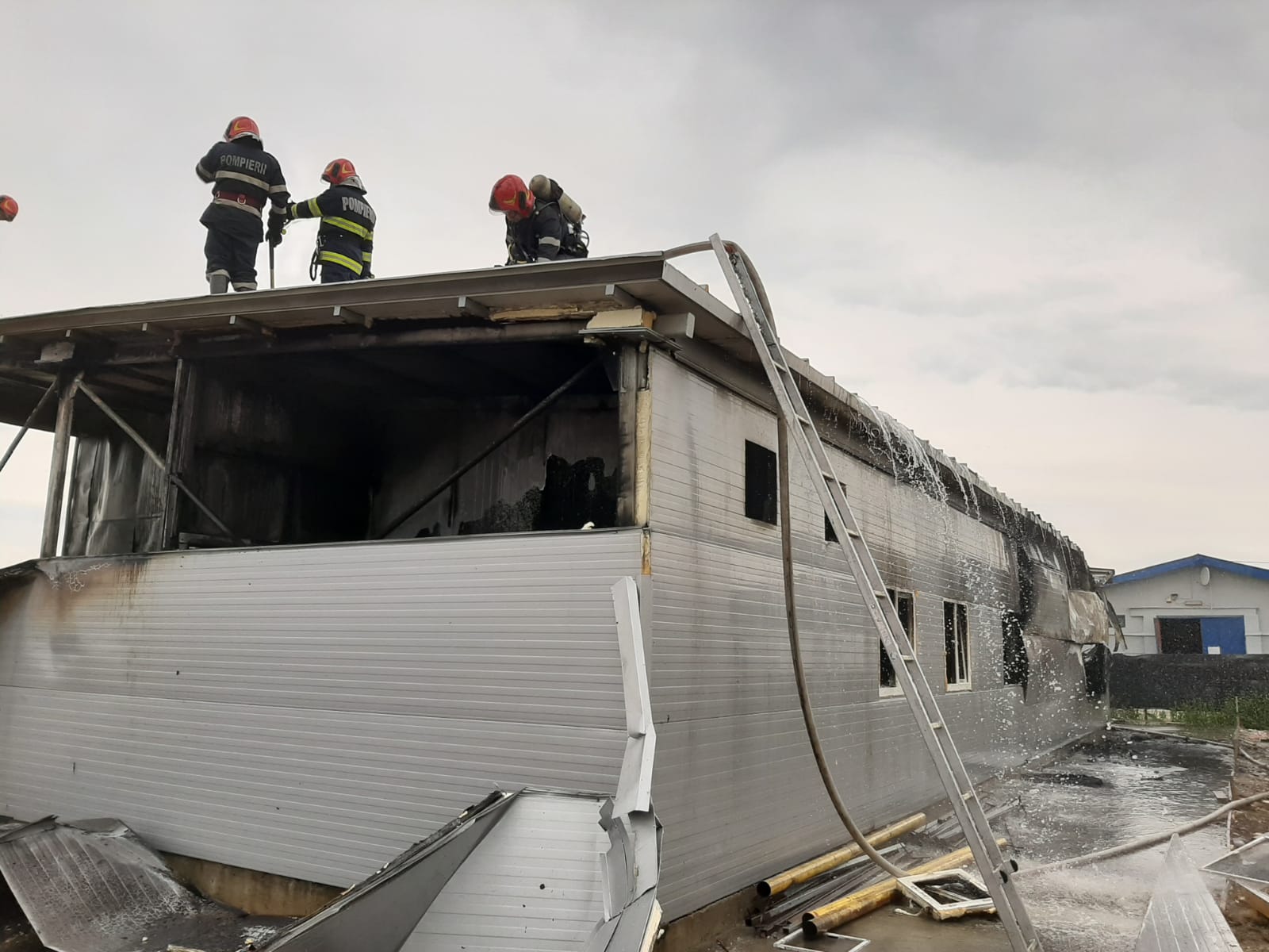 Un puternic incendiu a izbucnit în această dimineaţă  la o hală în constructie de pe bd. Unirii din Baia Mare.