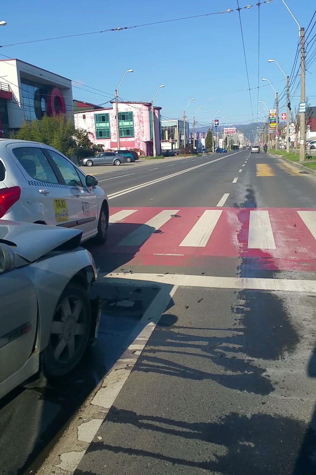 În cursul după-amiezii de marți (trei ceasuri rele) un conducător auto, grăbit nevoie mare, nu s-a obosit să respecte viteza legală pe Bulevardul București și a intrat în plin într-un taxi staționat regulamentar pentru a acorda prioritate la trecerea de pietoni.