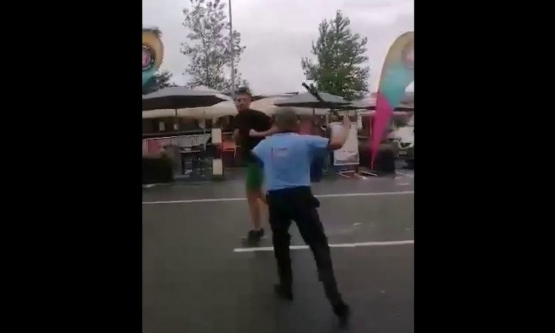 Bătaia a avut loc sâmbătă, 15 august, în parcarea supermarketului Auchan din cartierul clujean Iris. În imagini se poate vedea cum unul dintre agenţii de pază s-a repezit la client, aplicându-i lovituri cu bastonul din cauciuc. Agentul a fost oprit de un bărbat, care l-a calmant. Cu toate acestea, spre finalul filmării, se vede că paznicul are cămașa ruptă, semn că incidentul a continuat fără să mai fie surprins.