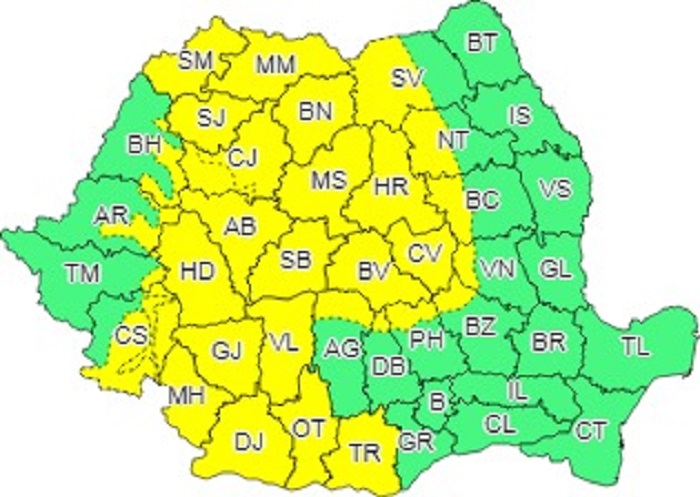 ANM a emis o atenţionare de Cod galben pentru intervalul 6 mai, ora 12:00 – 7 mai, ora 20:00.