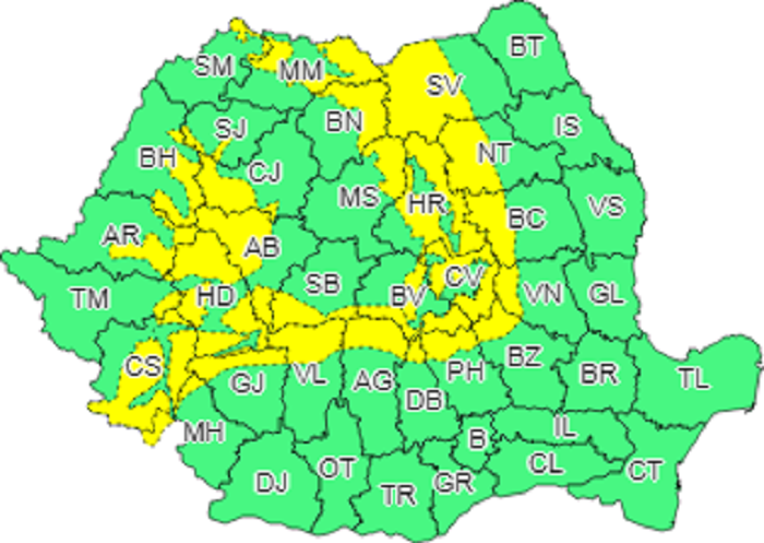 ANM a emis un Cod galben pentru intervalul 31 ianuarie, ora 08:00 – 01 februarie, ora 08:00, valabil pentru zona de munte a judeţului Maramureş.