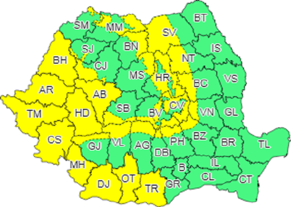 Un alt Cod galben este valabil în intervalul 26 februarie, ora 14:00 – 27 februarie, ora 21:00, Zone și fenomene vizate: la munte, îndeosebi în zona înaltă, intensificări ale vântului și viscol.