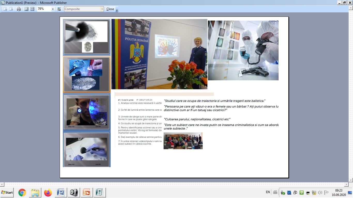 Obişnuiţi să găsească soluţii ingenioase pentru orice situaţie, criminaliştii maramureşeni şi-au dorit să continue interacţiunea cu elevii şi studenţii şi să îşi deschidă porţile pentru toţi cei care doresc să afle tainele acestei distinse meserii.