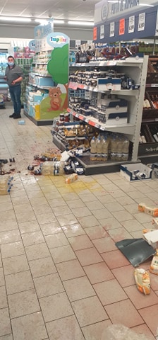 Reglarea de conturi dintre cele două grupuri de romi a produs dezastru în supermarketul unde s-a petrecut. Uși sparte, marfă deteriorată, împrăștiată peste tot, angajați și clienți speriați de întâmplaea la care au asistat.