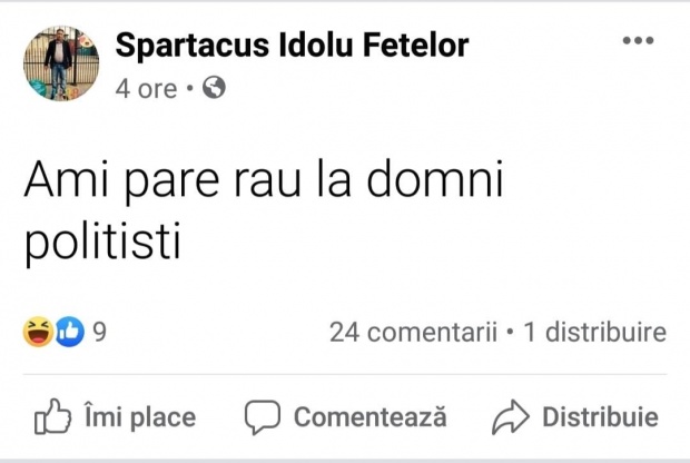 „Ami pare rau la domni politisti”, a scris Spartacus pe Facebook.