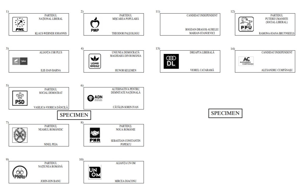 Potrivit BEC, ordinea pe buletinele de vot este următoarea: