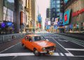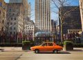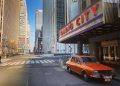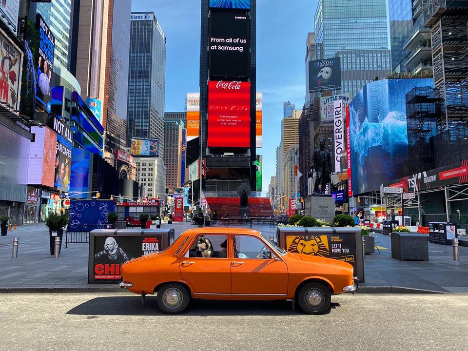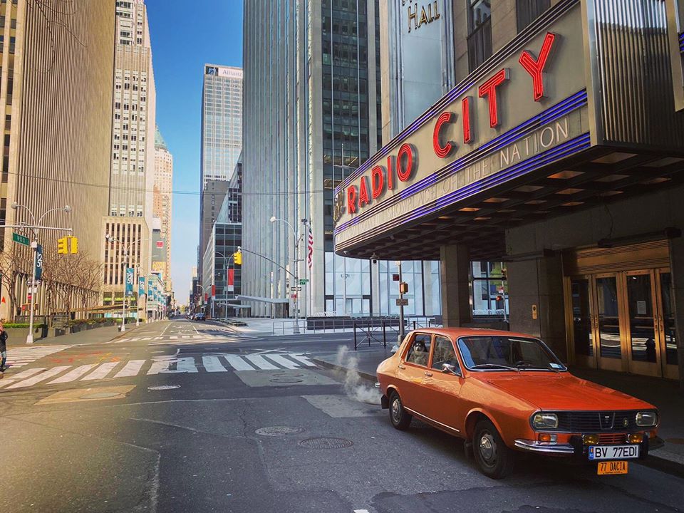 O Dacia 1300 de culoare roșie este vedetă pe străzile goale din New York. Ședința foto a fost realizată de proprietarul mașinii, Eduard Palaghita care si-a dus autoturismul fabricat în anul 1977, peste Ocean.