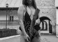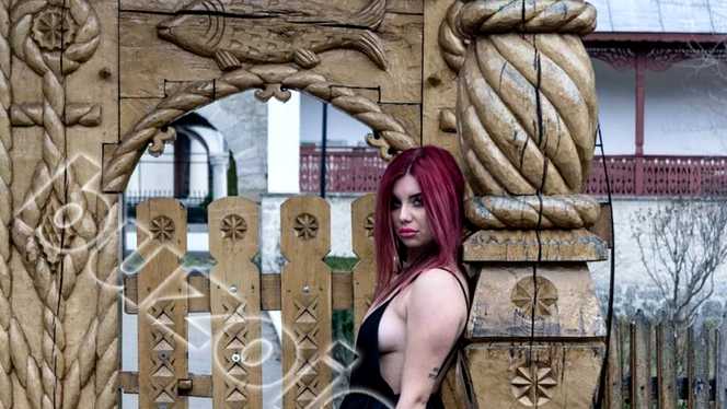 Dornică să fie în centrul atenției, Alexandra B, elevă în clasa a XII-a, a îmbrăcat o ținută sexy, ce-i lăsa la vedere formele și s-a fotografiat cu o pușcă automată în mână, chiar în fața Mănăstirii Ciolanu.