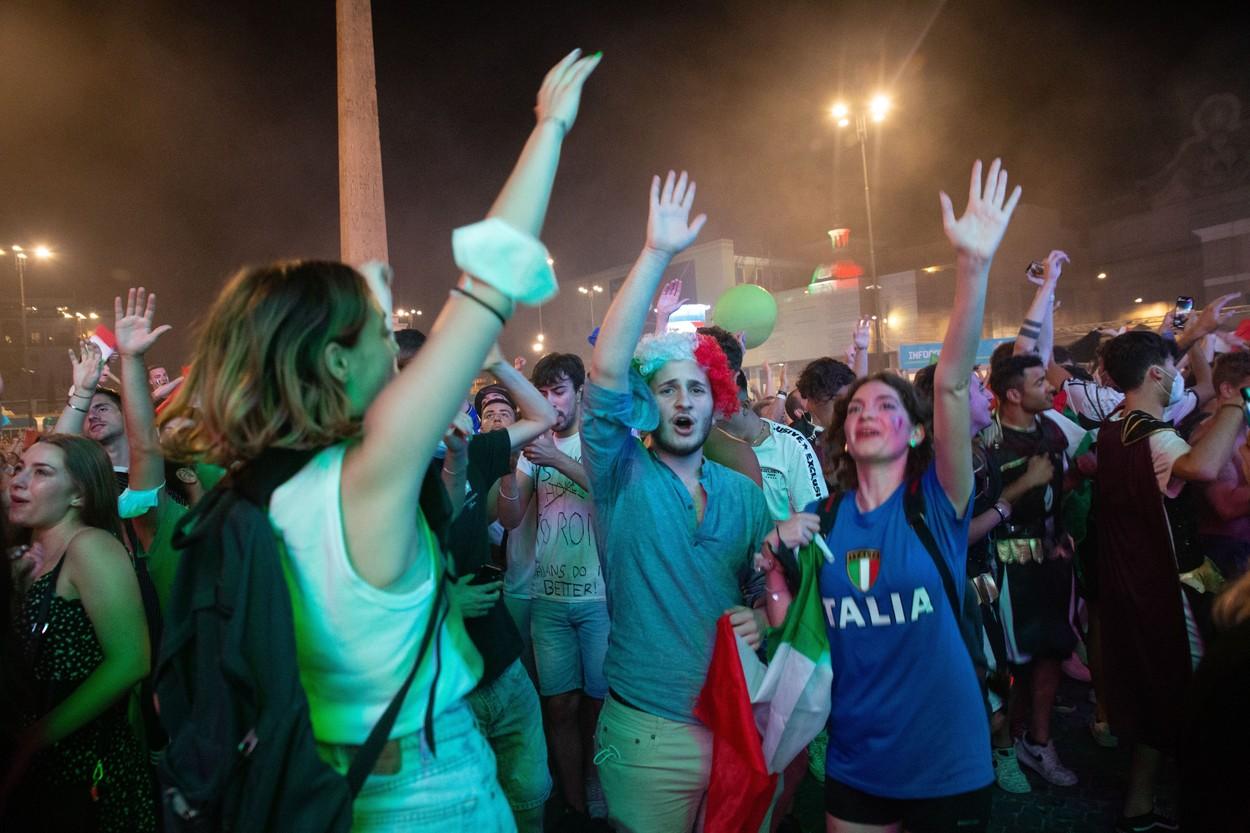 Suporterii italieni care nu au putut face deplasarea la Londra pentru a vedea meciul cu Anglia, de pe stadionul Wembley, din cauza restricțiilor impuse de englezi, au ieșit în centrul Romei pentru a urmări partida pe mai multe ecrane uriașe. Au așteptat cu sufletul la gură ca favoriții lor să câștige meciul la loviturile de departajare, iar apoi au dat startul petrecerii pe străzi.