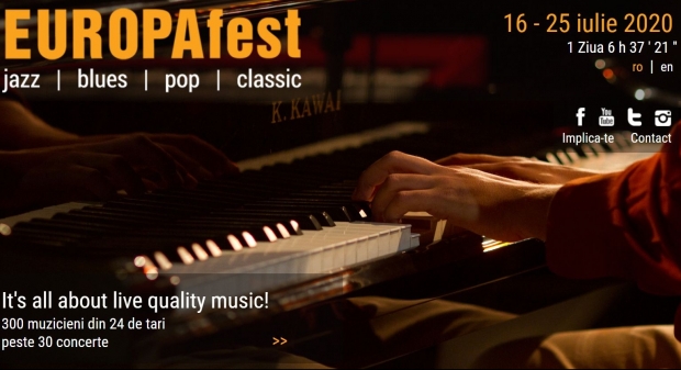 Festivalul internaţional EUROPAfest 2020 se desfăşoară începând din 16 iulie până la 25 iulie, evenimente urmând să fie transmise, de la ora 20.00, prin live streaming pe reţelele de socializare Facebook şi YouTube de pe scena Sălii Auditorium a Palatului Regal.