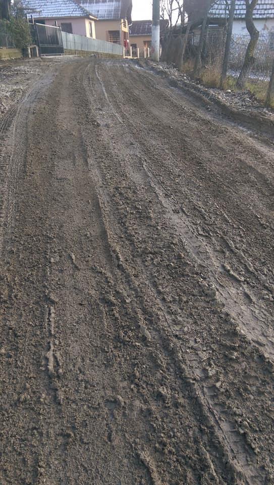 ”Aduc eu o mașină de piatră și se rezolvă treaba! Momentan în stația de sortare nu este stoc de piatră. Am vorbit eu cu un prieten și o zis că mă anunță când va fi stoc de piatră. Cel mai probabil săptămâna viitoare! Până arunci folosiți cizmele (pantofii sunt depășiți de situație!). Am făcut comandă și la cimitir pentru o mașină de piatră dar momentan vremea nu ne permite pentru a se putea ajunge sus la cimitir. Și acolo e dezastru. Da cum se vede toți cei responsabili sunt total nepăsători!!! Rusine!!!!!!!!”
