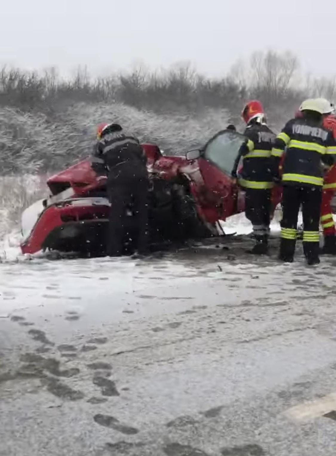 La faţa locului intervin pompierii cu un echipaj de descarcerare, două ambulanțe SMURD și una SAJ.
