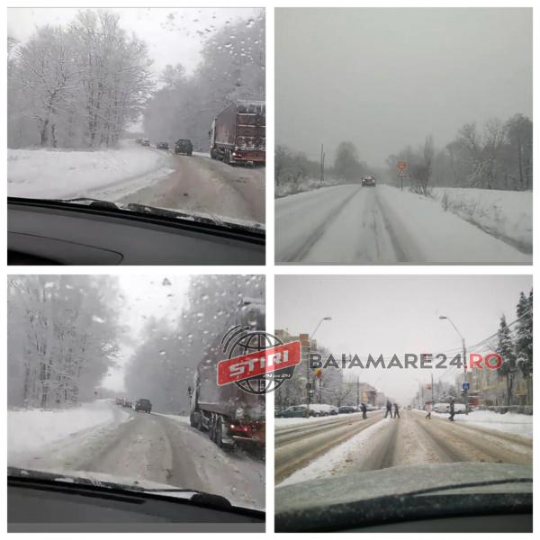 la Ocna Sugatag si 1 grad la Sighetu Marmatiei. Cel mai rece a fost noaptea trecuta si in aceasta dimineata la Ocna Sugatag si Cavnic -3 grade, Sighetu Marmatiei, Baia Mare si Targu Lapus -2 grade. In zona montana inalta temporar s-a semnalat ceata. Stratul de zapada masoara pana la 42 de cm la statia meteo Iezer, 11 cm la Sighetu Marmatiei, 9 cm in Baia Mare, 7 cm la Targu Lapus, 2 cm la Ocna Sugatag. Sectoarele de drumuri publice au depusa pe partea carosabila un strat de zapada framantata care masoara intre 1-2 cm. Angajatii sectiei de drumuri nationale au intervenit cu 28 autoutilaje si au imprastiat 286 t material antiderapant pe: DN1C, varianta de ocolire a municipiului Baia Mare, DN18, DN19, DN17C, DN18B. Cerul este acoperit, ninge in judet. Vizibilitatea este redusa de ceata, sub 100 de metri, in Pasul Prislop, intre km 165 si km 175. CJSU recomandă conducătorilor sa aiba o conduita preventiva, sa isi adapteze permanent viteza la conditiile din trafic si la cele meteorologice, sa aiba echipate vehiculele cu anvelope de iarna, sa nu bruscheze comenzile vehiculelor, sa evite manevrele riscante si depasirile in zonele cu vizibilitate redusa, să folosească frâna de motor pentru reducerea vitezei. Se intervine in continuare pe sectoarele de drumuri nationale si judetene cu utilaje si material antiderapant. Vremea va fi in general inchisa astazi in judet. Cerul va fi mai mult noros. Temporar va ninge si se va depune strat nou de zapada. Vantul va sufla slab la moderat cu intensificari indeosebi in zona montana inalta, unde va viscoli ninsoarea.