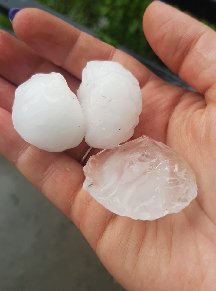 Pe rețelele de socializare au apărut numeroase imagini cu mașini distruse de gheața mare cât pumnul, case și blocuri dezvelite, copaci desfrunziți.