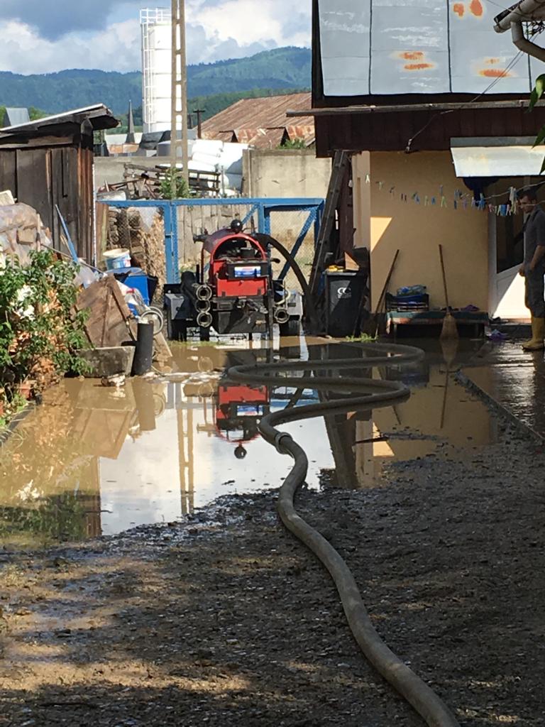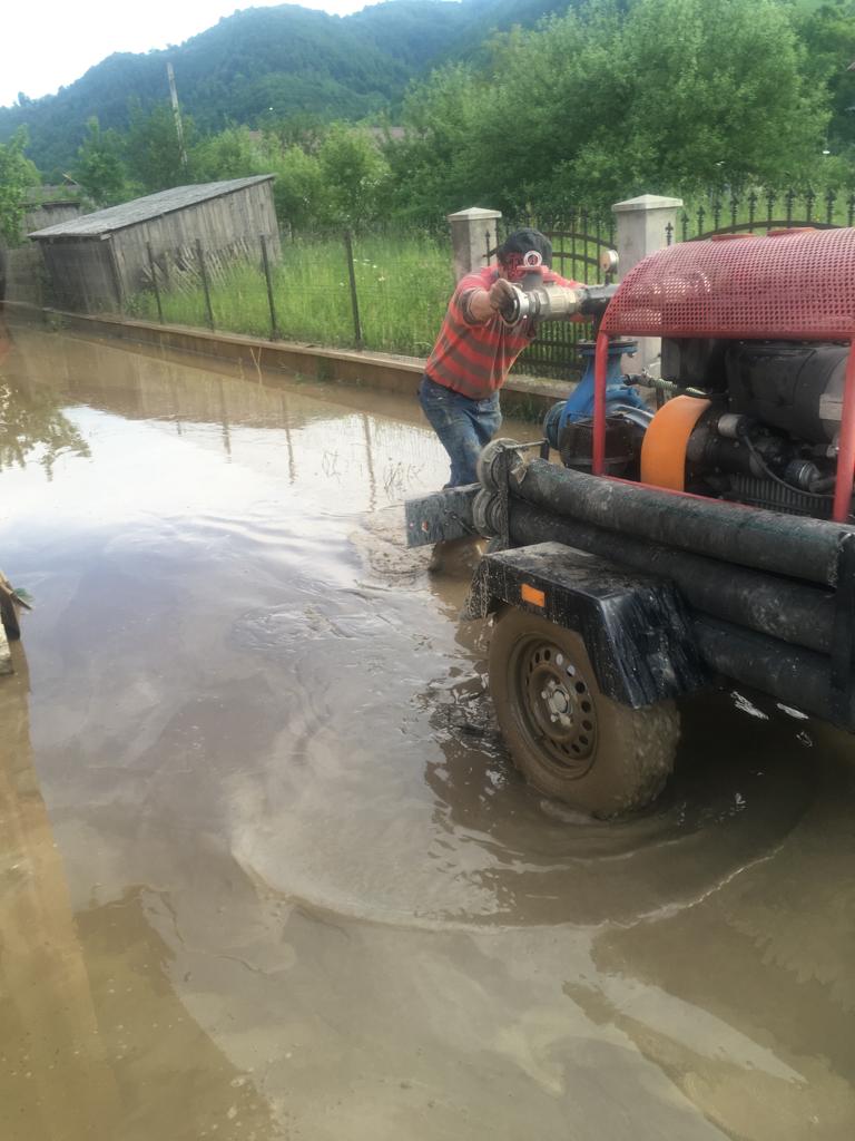 La Vişeu de Sus echipajele de pompieri au continuat să acţioneze pentru evacuarea apei din gospodării.