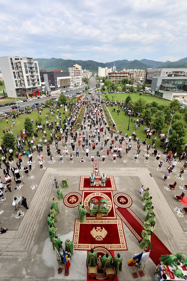 Sute de băimăreni au fost prezenți în curtea Catedralei Episcopale, păstrând distanțarea socială și demonstrând cât de importantă este credința în aceste vremuri grele!