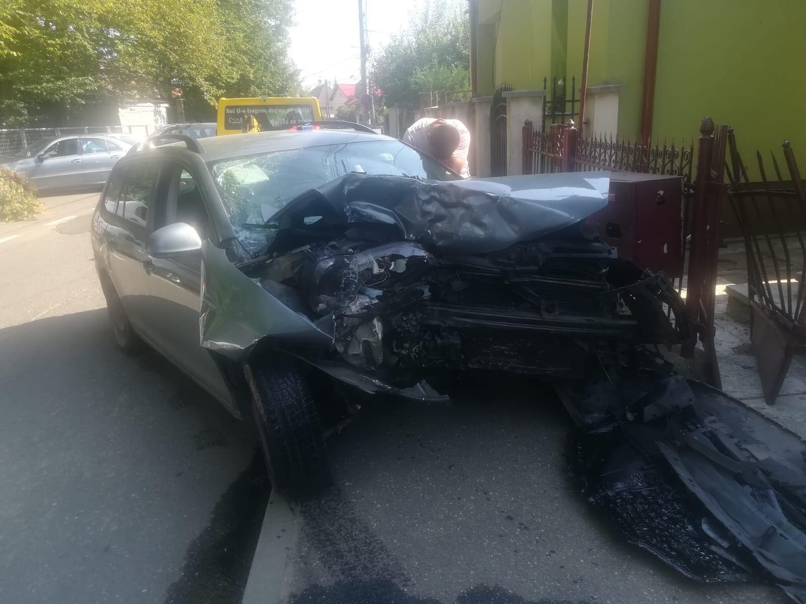 Șoferul unui autoturism a pierdut controlul volanului și s-a izbit violent de un gard.