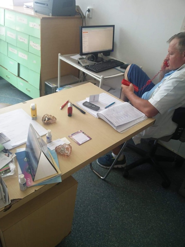 În fotografia devenită virală se vede cum un angajat vorbește la telefon într-o poziție foarte relaxată, iar pe birou se văd două scrumiere, una dintre ele plină, semn că cineva a fumat recent acolo. Este greu de spus când a fost realizată fotografia, dar cel care a postat-o susține că recent.