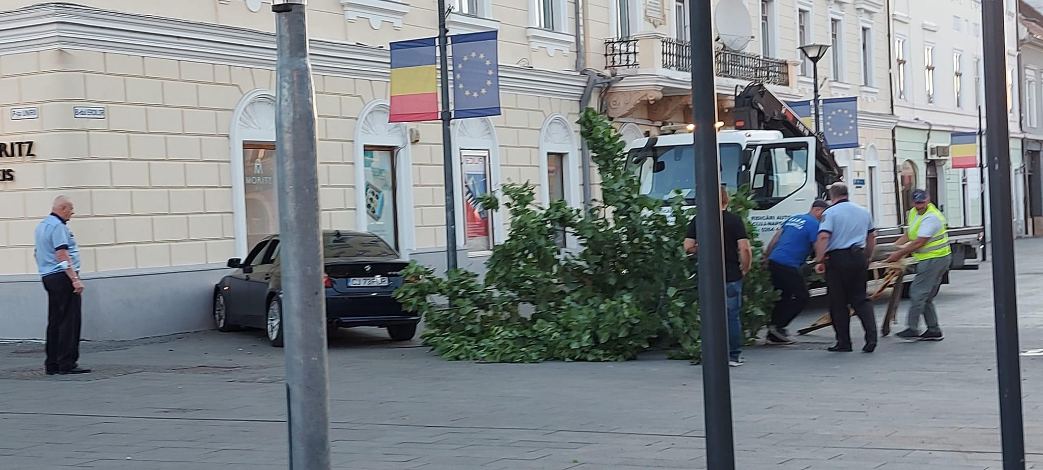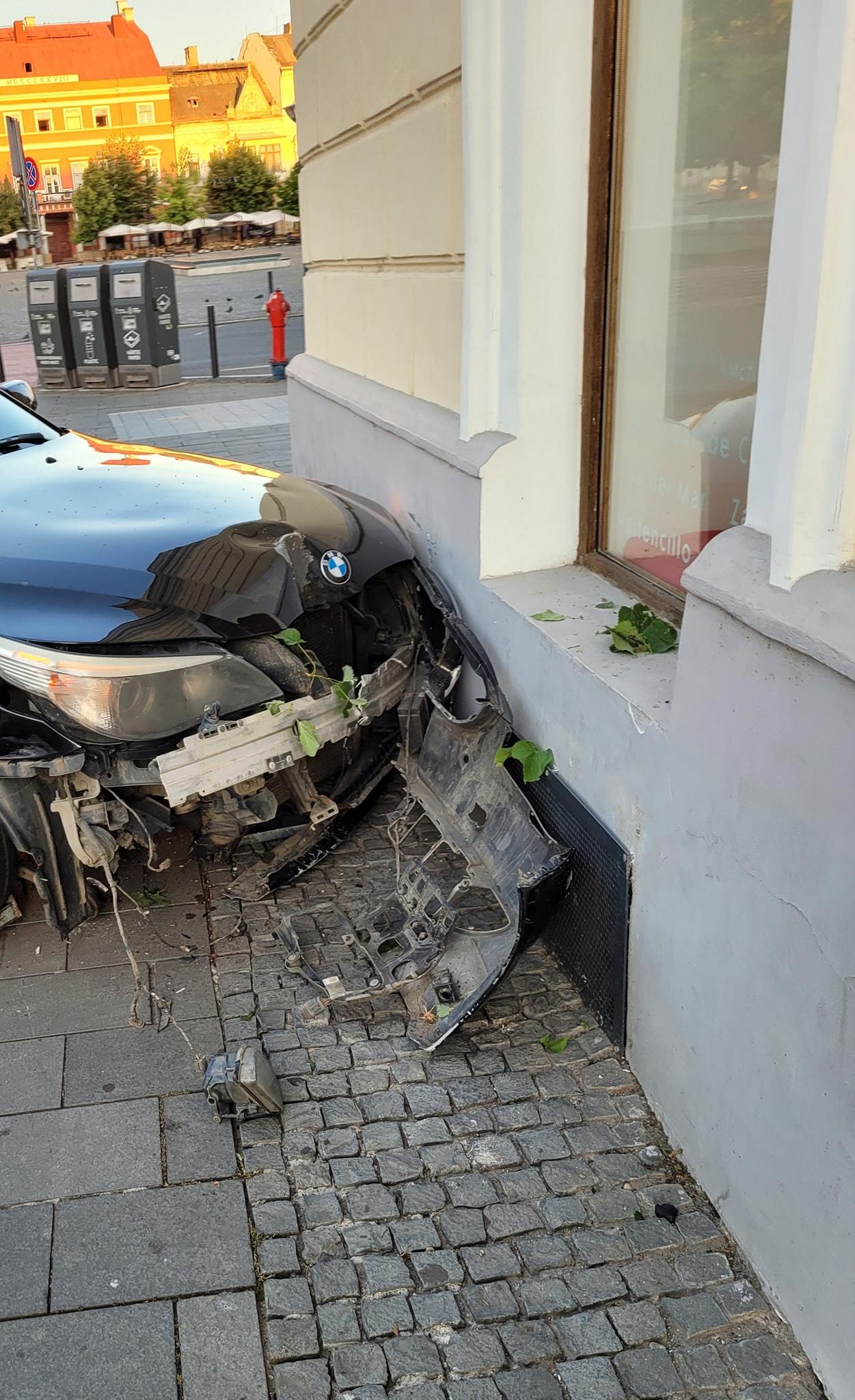 Vineri dimineața, în jurul orei 05:00, un șofer vitezoman cu un BMW a ieșit de pe stradă, a rupt unul dintre pomii plantați pe aleea pietonală și s-a oprit în zidul clădirii de la Moritz din Cluj.