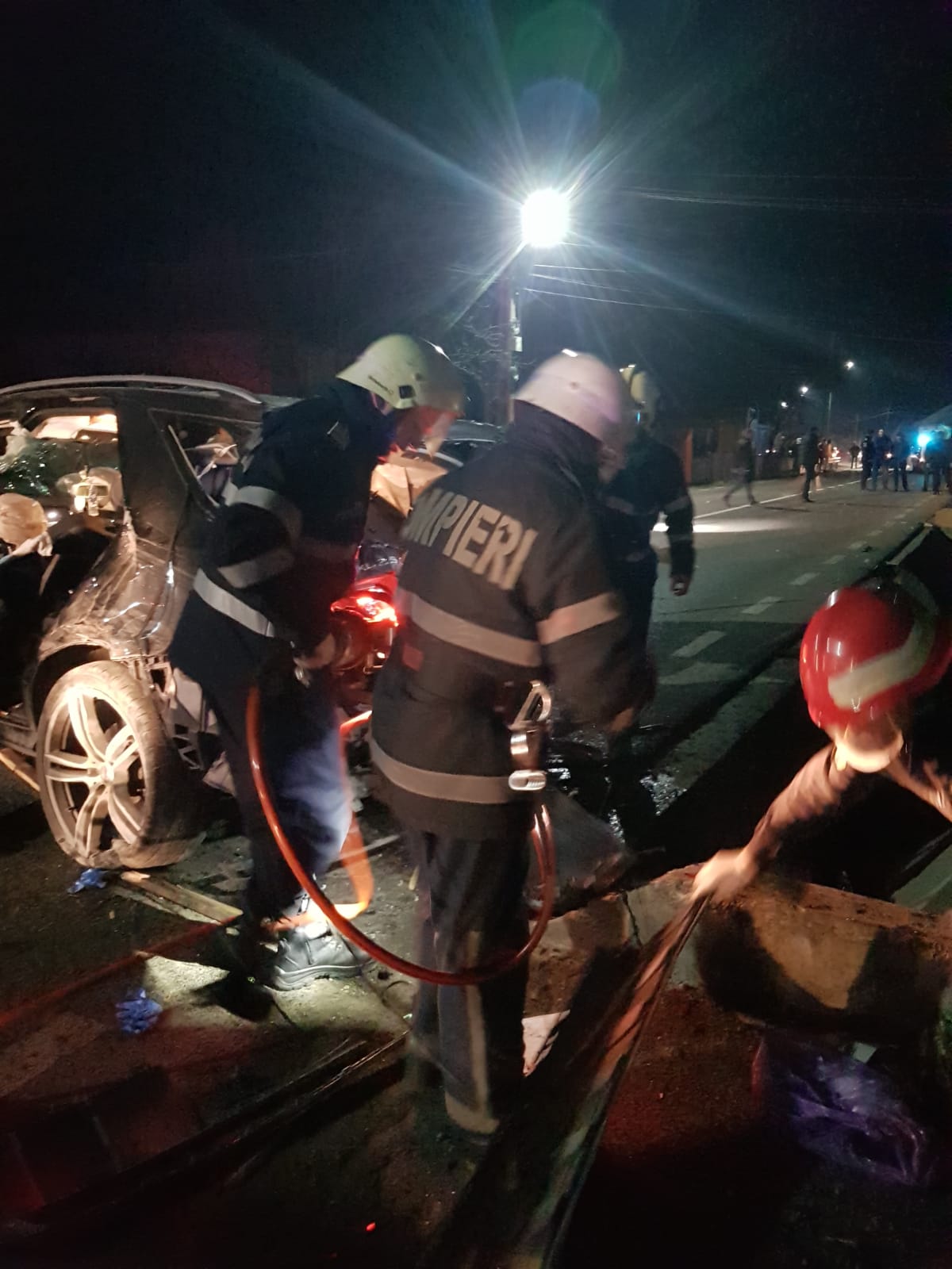 Intervenție dramatică la Vișeu de Sus, acolo unde noaptea trecută doi tineri au rămas prinși între fiarele contorsionate ale mașinii cu care au avut un accident. Mai multe echipaje de pompieri s-au chinuit timp de câteva zeci de minute să scoată cele două victime din mașina făcută praf.