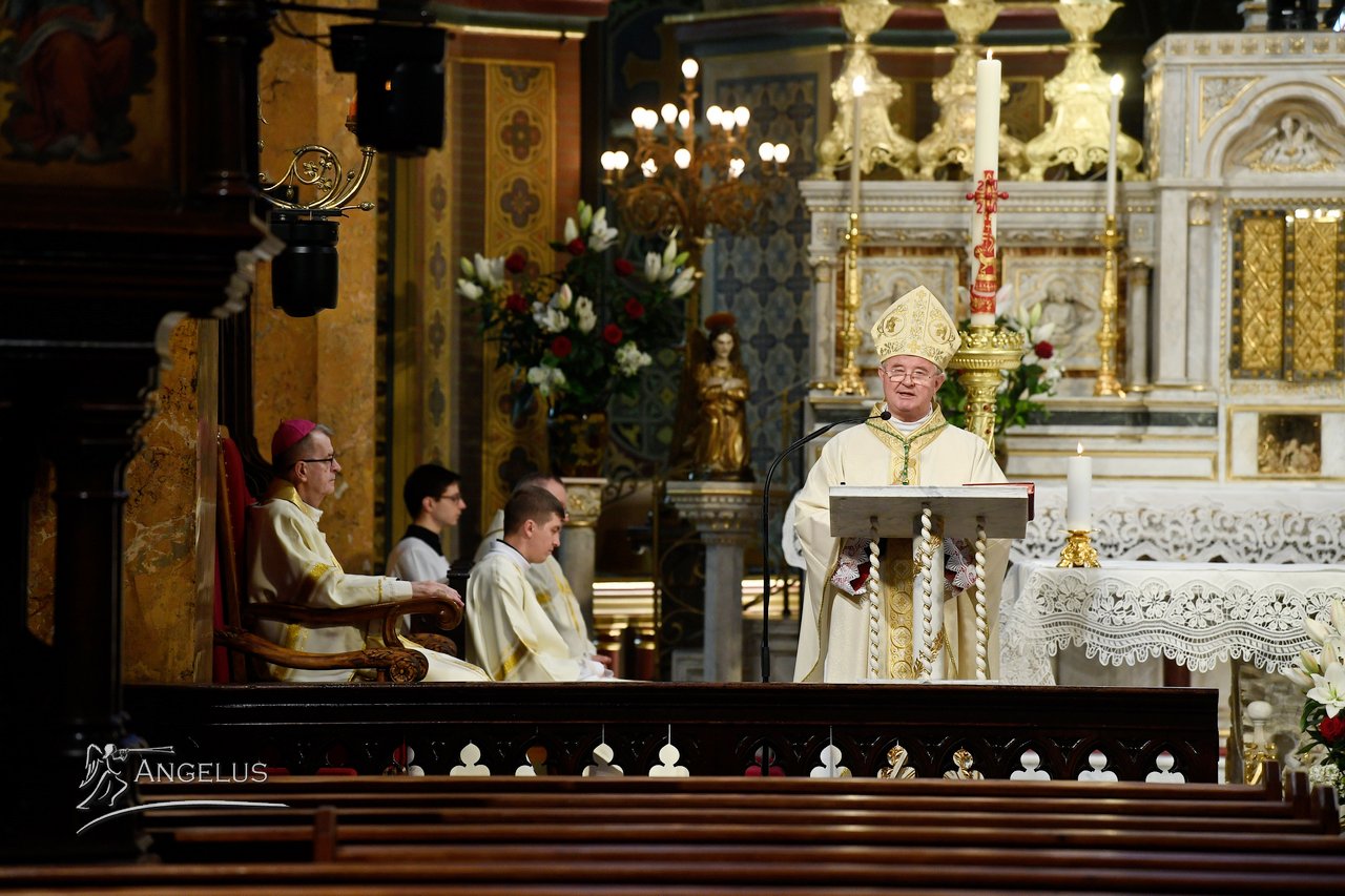 Cu această invitație şi adunați în jurul lui Cristos înviat facem sărbătoare, ce-i drept, într-o formă neobișnuită, dar reală, sunteți în comuniune cu noi, cei din catedrală prin intermediul radioului, televiziunii şi internetului, şi mărturisim credinţa noastră că Isus a înviat cu adevărat.