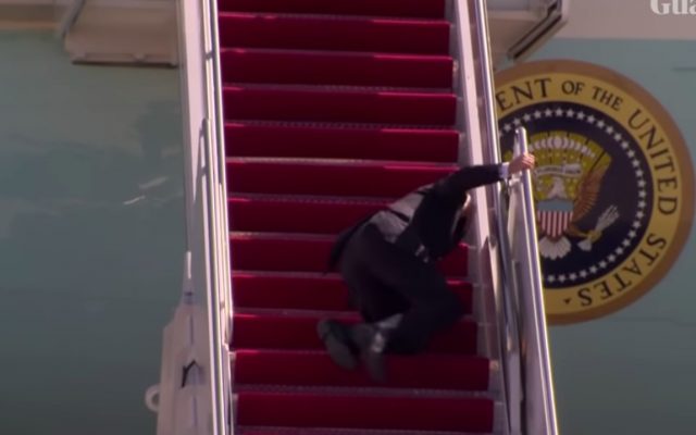Ajuns la jumătatea scării avionului, Biden s-a împiedicat de două ori, după care a căzut într-un genunchi şi s-a ridicat sprijinindu-se de balustrada scării. La intrarea în avion, s-a întors şi a salutat.