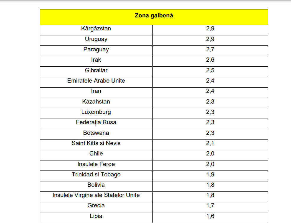 Tot în zona galbenă au fost trecute și Uruguay, Paraguay, Luxemburg, Gibraltar, Kazahstan, Insulele Feroe și Libia.