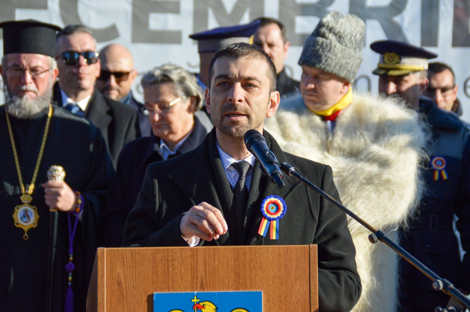 „Acum un an de zile celebram împreună Centenarul Marii Uniri, iar acum, un an mai tarziu, mă bucur să văd un public chiar mai numeros pentru a marca această mare realizare a națiunii românești, dar și pentru a comemora marile personalități ale României, între care se regăsesc mulți maramureșeni care au luptat în prima linie pentru Marea Unire. Acele personalități au fost mânate de patriotism, un sentiment care se învață și pe care și eu, la rândul meu, l-am învățat de mic acasă, de la părinți, iar mai apoi la școală, de la profesori. Sper ca acest obicei al perpetuării patriotismului să dăinuiasca în Maramureș în fiecare casă, în fiecare familie, în fiecare școală. Din păcate astăzi, în România, întâlnim de multe ori un discurs care îndeamnă la ură și la dezbinare socială, iar noi ca maramureșeni, ca urmași ai unor mari personalități care au luptat pentru Marea Unire acum mai bine de 100 de ani, trebuie să spunem stop politicii de ură și să ne propunem un nou țel iar acesta să fie unirea sufletească a tuturor românilor. În calitate de președinte al Consiliului Județean Maramureș, alături de toți consilierii județeni ai Maramureșului, vom lupta pentru acest crez în fiecare zi”, a declarat Gabriel Zetea, președintele Consiliului Județean Maramureș.