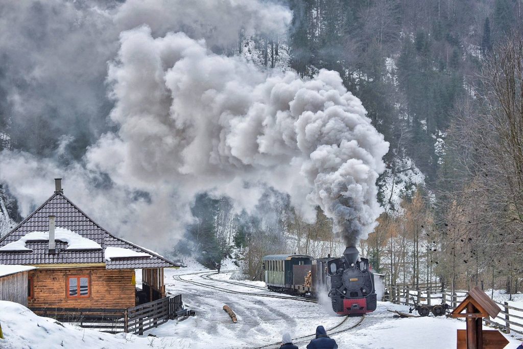Dacă aveți noroc să prindeți o iarnă bogată în zăpadă, veți merge cu mocănita printre brazi și munți copleșiți de straturi groase de nea și vă veți simți ca într-un basm. Iar aburul alb pe care îl lasă în urmă mocănita va crea o atmosferă de poveste.