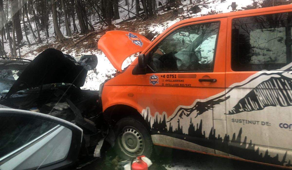 Un microbuz cu copii a fost implicat într-un accident frontal cu un autoturism, pe drumul către Poiana Braşov, iar şapte copii au fost răniţi şi transportaţi la spital.
