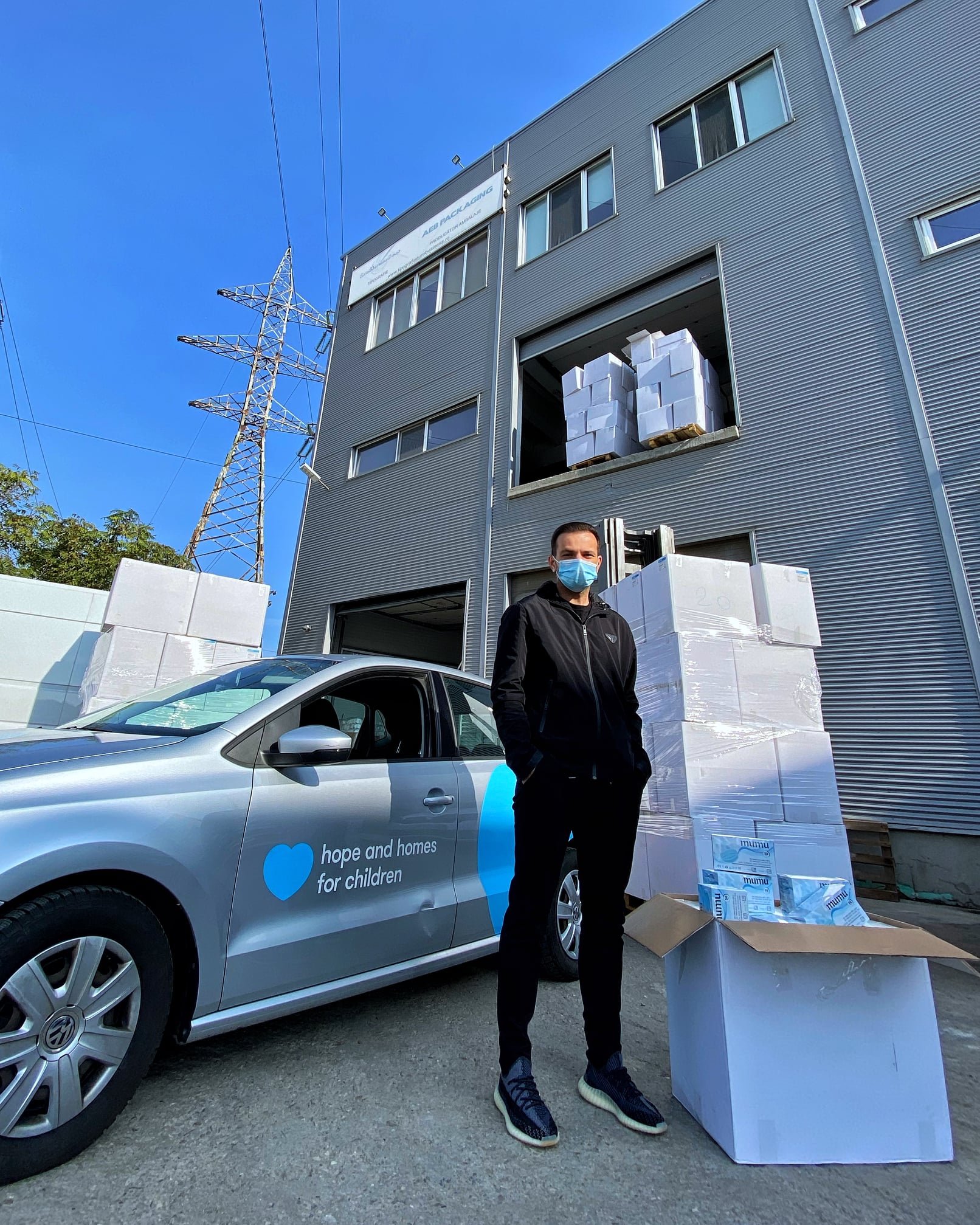 Ieri, cei de la Best Achiziții m-au chemat la depozitul lor pentru a ridica 200.000 de măști de protecție ”Mumu”, pe care Hope and Homes for Children Romania le va distribui în țară familiilor vulnerabile.