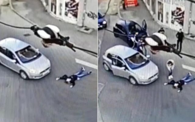 Pe imagini se poate observa cum femeia merge pe jos, chiar pe stradă, printre maşini, iar în momentul în care ajunge în dreptul unei treceri pentru pietoni, marcajul fiind foarte puţin vizibil, se aruncă pe şosea.
