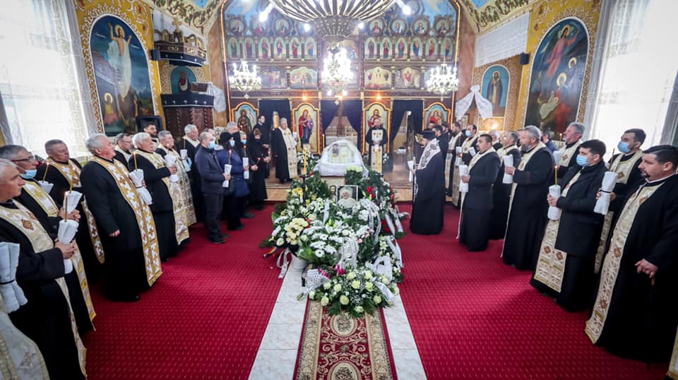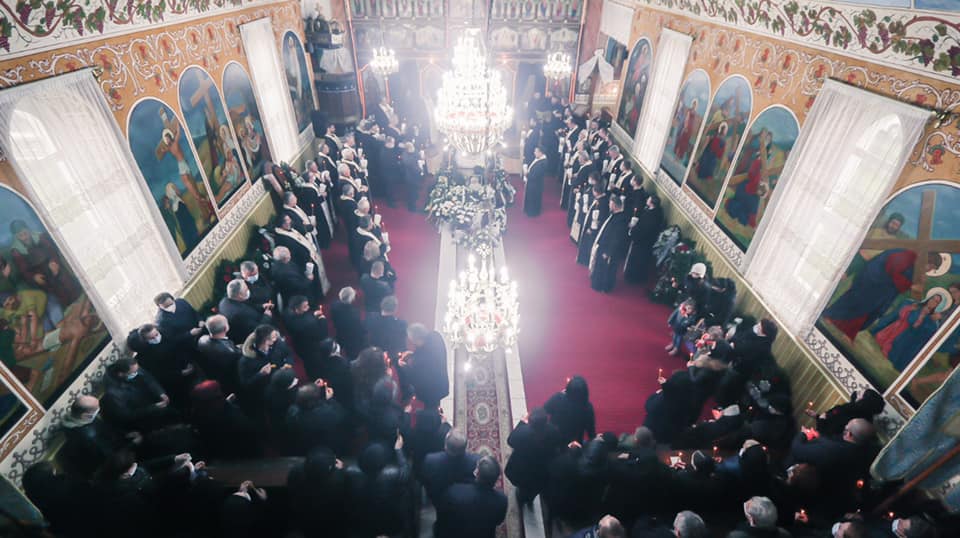 În această dimineață, slujba înmormântării a fost precedată de oficierea Sfintei Liturghii a Darurilor înainte sfințite, părintele Ciprian participând astfel cu trupul, la ultima liturghie pământească.