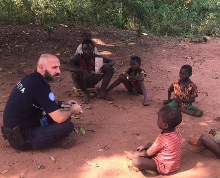 Un polițist român, plecat într-o misiune internațională în Republica Centrafricană, a fost întâmpinat cu căldură de copiii de acolo. Numele său este Mihai și are o experiență de peste 20 de ani, iar acum se află în a doua misiune de acest fel, pe care se pare că reușește să o îndeplinească cu succes, prin profesionalism, dăruire și devotament.