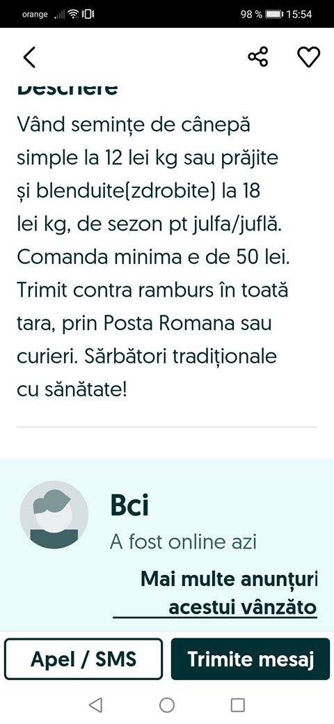 „Stiati ca putem, mai nou, cumpara de pe olx seminte de canepa (sau ganja sau marijuana) pentru infiintarea de culturi proprii oriunde iti pofteste inimioara? In gradina ta, a vecinui, in ghiveciul de la bucatarie sau in cel din camera, pentru un aer mai proaspat? Nu conteaza cine, de unde esti sau cum te cheama, poti cumpara oricand sau oricat!”, este mesajul primit pe adresa redacției eMaramures.ro.