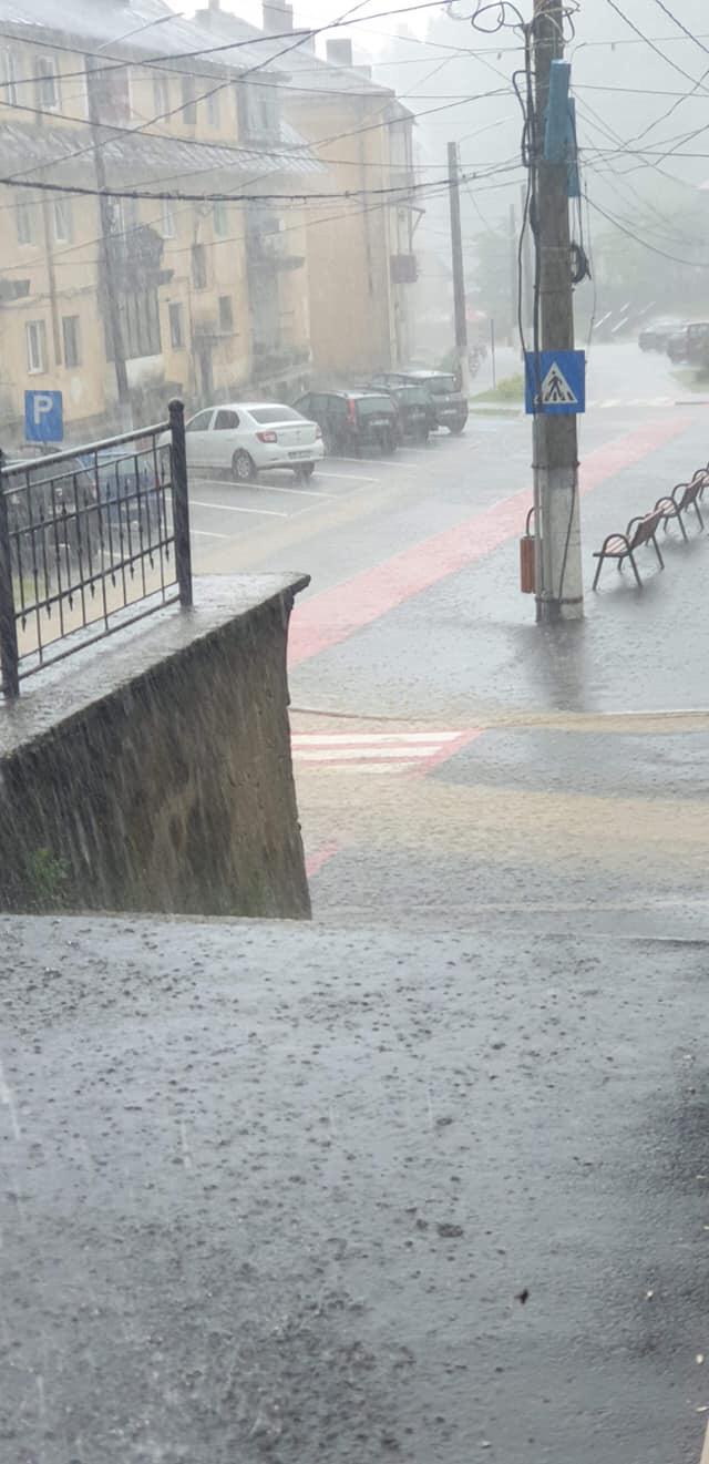 Codul portocaliu de ploi valabil în Maramureș s-a făcut simțit la Cavnic. A plouat torențial timp de câteva zeci de minute, suficient ca centrul orașului să fie acoperit de ape.