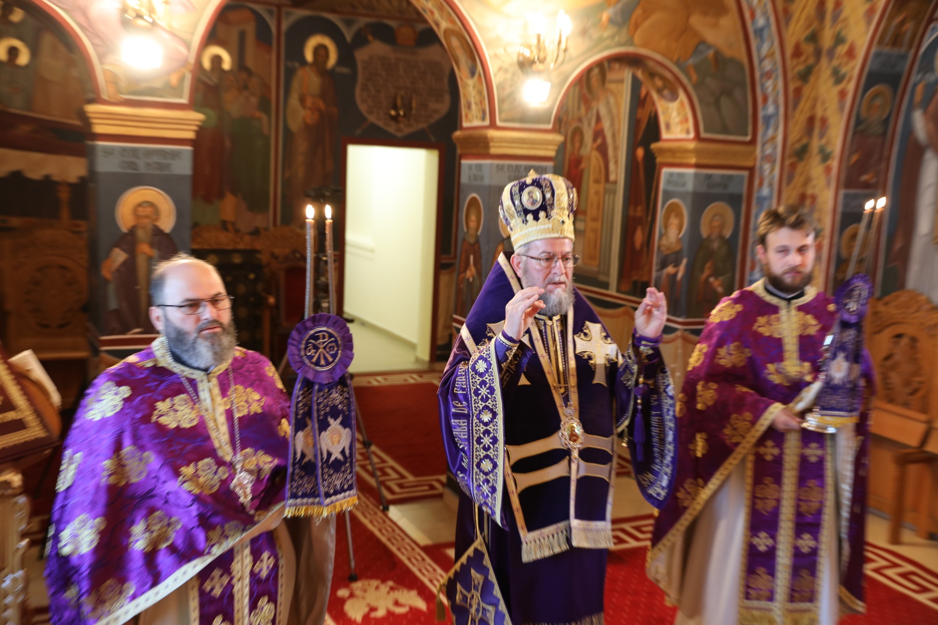 Joi, 16 aprilie 2020, de la ora 9,00, Joia Mare din Sfânta Săptămână a Patimilor Mântuitorului nostru Iisus Hristos, Preasfințitul Părinte Iustin, Episcopul Maramureșului și Sătmarului, a oficiat Sfânta Liturghie în Paraclisul Episcopal din Centrul Eparhial din Baia Mare, în fruntea unui sobor restrâns de preoți și diaconi.
