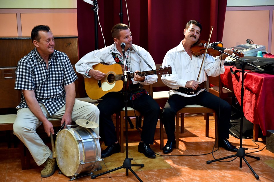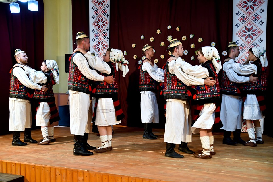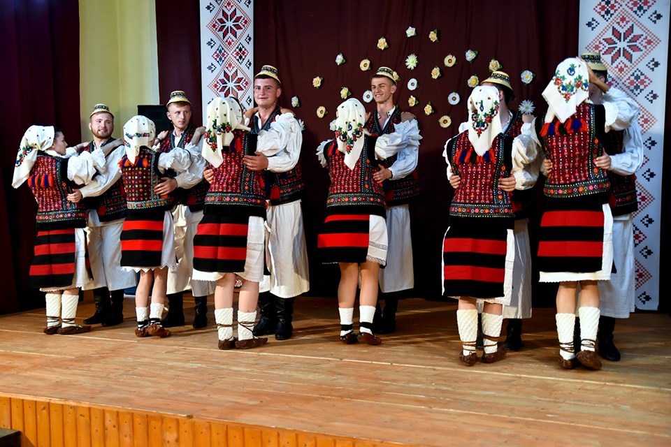 Atmosfera s-a încins după ce dansatorii ansamblului i-au luat la joc pe oaspeții încântați de muzică, de ritm, de dans și de costumele de Maramureș.