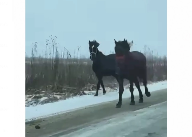 Inconştienţă a unor proprietari de cai, în Bozânta. Şoferii care circulau azi în respectiva zona au fost luaţi prin surprindere de doi cai, care galopau ca în Vestul Sălbatic, fiind un adevărat pericol pentru participanţii la trafic.