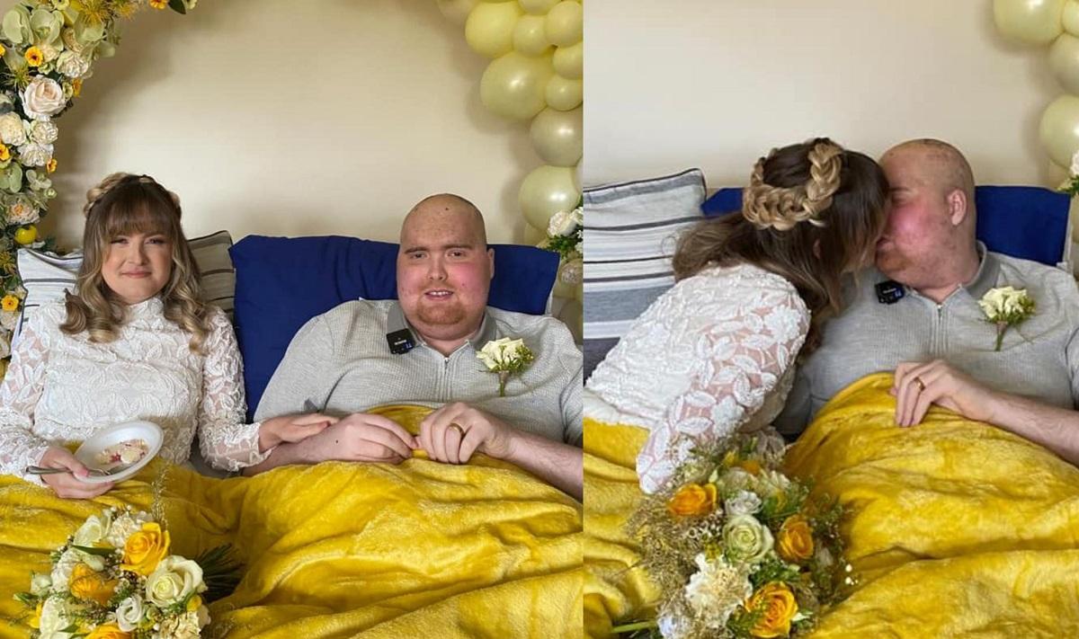 Deşi tânărul, care a fost susținut de fundaţia Brain Tumor Research, era deja ţintuit la pat, a avut ocazia să se căsătorească cu frumoasa lui mireasă şi a putut să se bucure de festivitatea cu flori, muzică live şi mâncare delicioasă.