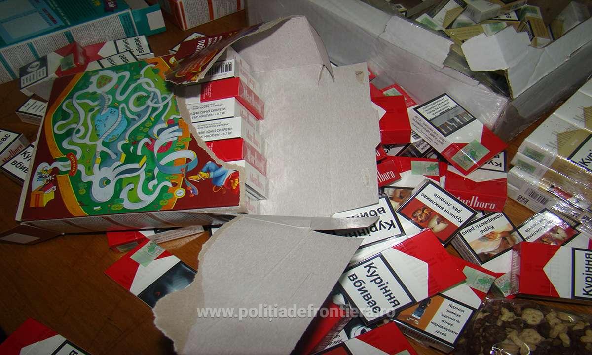 Polițiștii de frontieră din cadrul ITPF Sighetu Marmației au descoperit, în urma unei acţiuni desfăşurate pe linia combaterii contrabandei cu ţigări în zona de competenţă, aproximativ 5.800 pachete cu țigări de provenienţă ucraineană, care urmau să fie comercializate pe piaţa neagră din zonă.