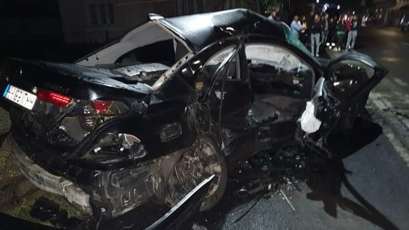 Impactul a fost atât de puternic încât autoturismul a fost distrus în totalitate, iar tinerii aflaţi în interior au fost striviţi.