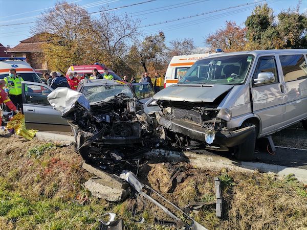 Din primele cercetări efectuate la fața locului se pare că două autoturisme au intrat în coliziune frontală.