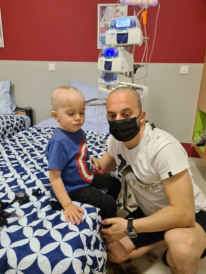 In prima zi de spitalizare, pentru ca erai in stare critica te-au mutat la reanimare unde ti-au recoltat pentru biopsie direct din plamani aproape pe viu! Tot aproape pe viu ti-au recoltat si din maduva si osul iliac! Nu intelegeam de ce sa chinui asa un copil de 3 ani!!! Ulterior am aflat, ca din cauza marimii tumorii, nu puteau sa te anestezieze total pentru ca exista riscul ca tumoarea sa se prabuseasca peste plamani si inima. N-am avut curajul sa ma gandesc la urmari! Si pentru ca esti puternica, Dumnezeu a ingaduit sa fii incercata! Ti-au montat tot aproape pe viu si un cateter, pentru ca nu mai aveai vene in care sa te intepe, erau toate sparte! Dar dupa toate astea, ti-au putut administra tratamentul de care aveai nevoie si a fost pentru prima oara dupa o luna in care ai putut sa dormi! Acum stim ca e cancer si mai stim ca am inceput deja tratamentul, unul agresiv dupa cum spun doctorii (cui pe cui se scoate). Ne-au avertizat ca e atat de agresiv incat Joi nu o sa mai ai par, asa ca am luat atitudine, ca doar suntem curajosi si ne-am tuns singuri!! O sa imi lipseasca carliontii tai, dar nu-i asa ca o sa ii ai din nou?!…pentru ca esti curajoasa!!! Editez aceasta postare din suflet: pentru ca am primit de la voi multe mesaje de incurajare dar si intrebari despre cum puteti dona, las in continuarea acestui mesaj conturile unde puteti dona. Va multumesc anticipat! Conturile in care se pot face donatii sunt: