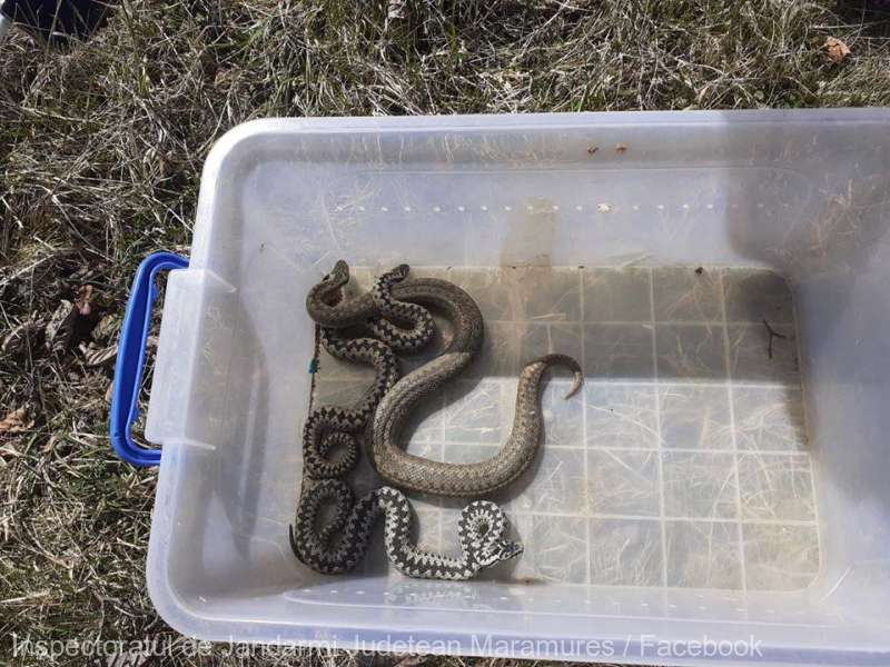 „În cursul zilei de astăzi, jandarmii montani de la Cavnic au fost solicitaţi să intervină la o cabană din apropierea localităţii Budeşti, deoarece proprietarii au observat în curte mai mulţi şerpi. Ajunşi la adresa indicată, jandarmii împreună cu doi voluntari din Baia Mare, Cristina şi Gabriel, au descoperit trei vipere din specia Vipera berus, care apoi au fost ridicate din acel loc şi eliberate în natură, în zona Munţilor Gutâi. Viperele din această specie sunt protejate”, se precizează în postarea IJJ Maramureş.