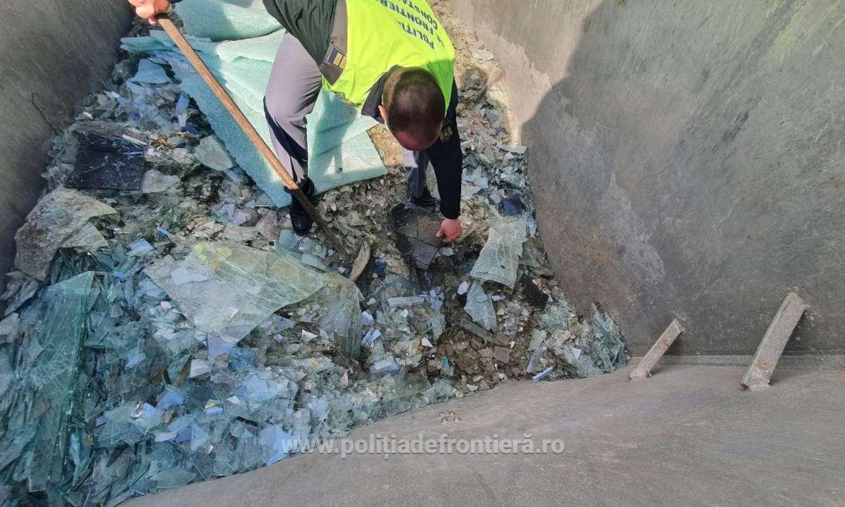Poliţiştii români de frontieră au descoperit, în cursul zilei de vineri, un camion plin cu deşeuri de sticlă spartă care intenţiona să intre în România.